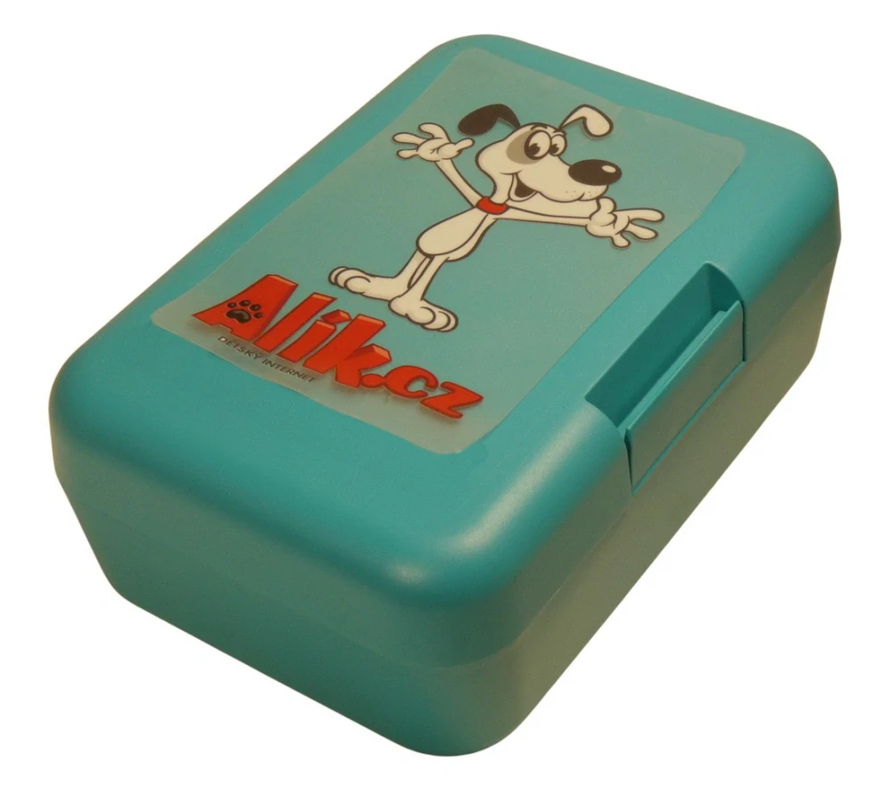 Plastový svačinový box s potiskem s kresby pejska Alíka z dětského hravého webu alik.cz na bílém podkladě. Boxík je vhodný k uložení nejen klasické svačiny, ale i dalších potravin jako např. sušeného ovoce a oříšků, sušenek a jiných dobrot. Svou velikostí je velmi vhodný dětem do školních aktovek a batohů, do školy i na výlety.