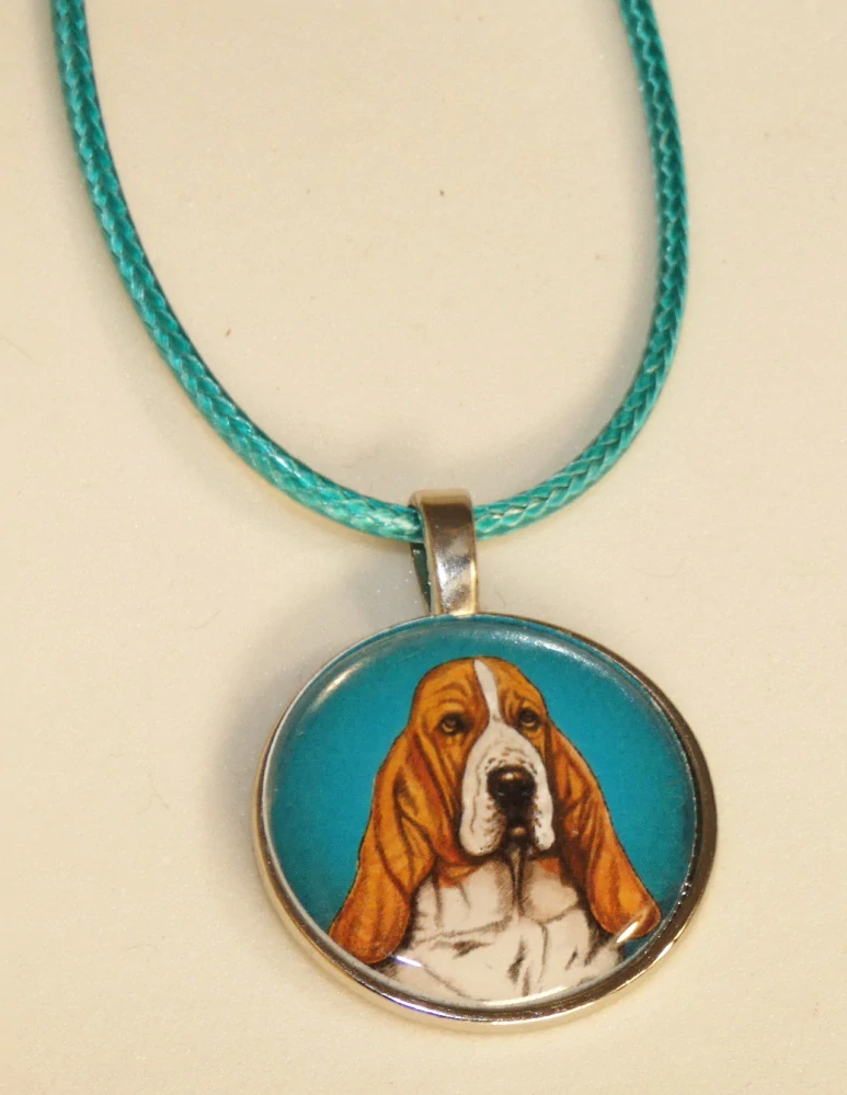 Z nabídky vedle hlavního obrázku lze zvolit nejen barvu pozadí pejska, ale i návlekový materiál. Nejčastěji přívěsky dodáváme s barevnou bavlněnou šňůrkou o průměru 2mm, délce 45 cm + 5 cm adjustační řetízek se zapínáním na karabinku. Barvu šňůrky volíme dle barevného okolí psa, popř. černou, krémovou či šedou. V nabídce najdete drobný řetízek stříbrné barvy s délkou 50 cm se zapínáním na karabinku. Přívěsek lze koupit na plochém kroužku, kde je vnější průměr 3 cm, vnitřní průměr 2,5 cm a vznikne tak klíčenka.