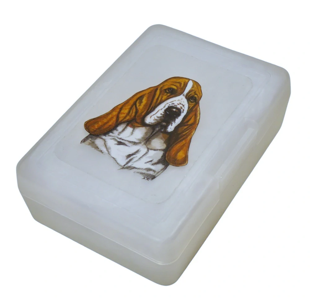 Plastový svačinový box s barevným potiskem baseta. Boxík je vhodný k uložení nejen klasické svačiny, ale i dalších potravin jako např. sušeného ovoce a oříšků, sušenek a jiných dobrot. Svou velikostí je velmi vhodný dětem do školních aktovek a batohů, do školy i na výlety.