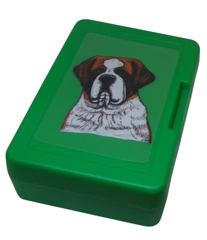 Plastový svačinový box s potiskem svatobernardského psa. Boxík je vhodný k uložení nejen klasické svačiny, ale i dalších potravin jako např. sušeného ovoce a oříšků, sušenek a jiných dobrot. Svou velikostí je velmi vhodný dětem do školních aktovek a batohů, do školy i na výlety.