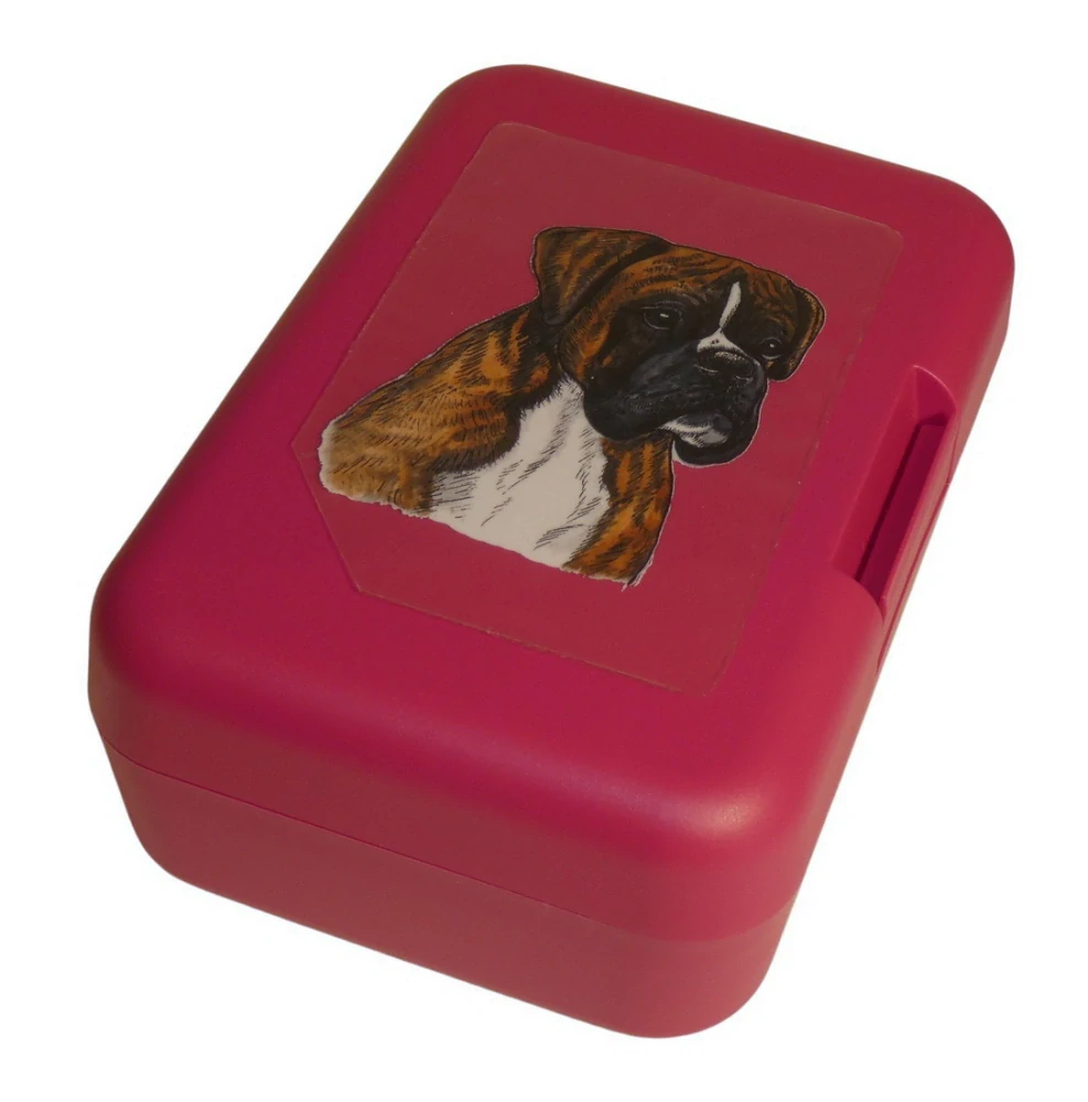 Plastový svačinový box s potiskem žíhaného boxera. Vhodný k uložení nejen klasické svačiny, ale i dalších potravin jako např. sušeného ovoce a oříšků, sušenek a jiných dobrot. Svou velikostí je velmi vhodný dětem do školních aktovek a batohů, do školy i na výlety.