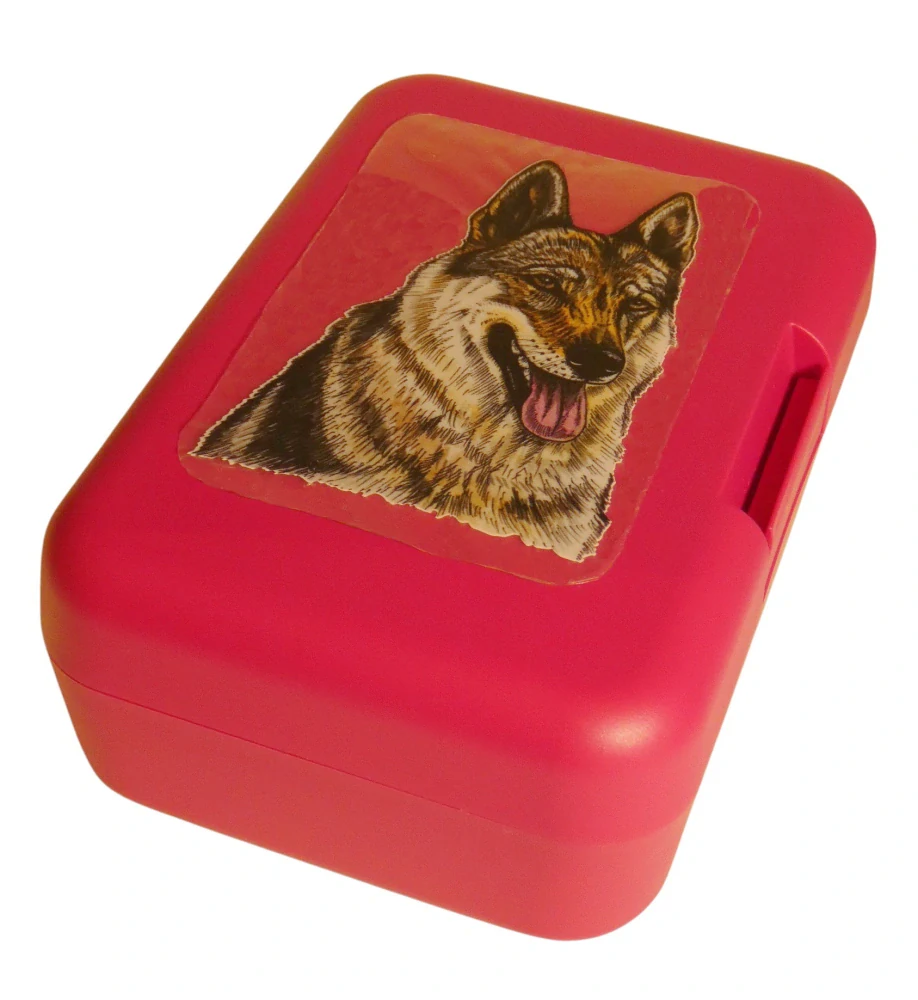 Plastový svačinový box s barevným potiskem československého vlčáka. Vhodný k uložení nejen klasické svačiny, ale i dalších potravin jako např. sušeného ovoce a oříšků, sušenek a jiných dobrot. Svou velikostí je velmi vhodný dětem do školních aktovek a batohů, do školy i na výlety.