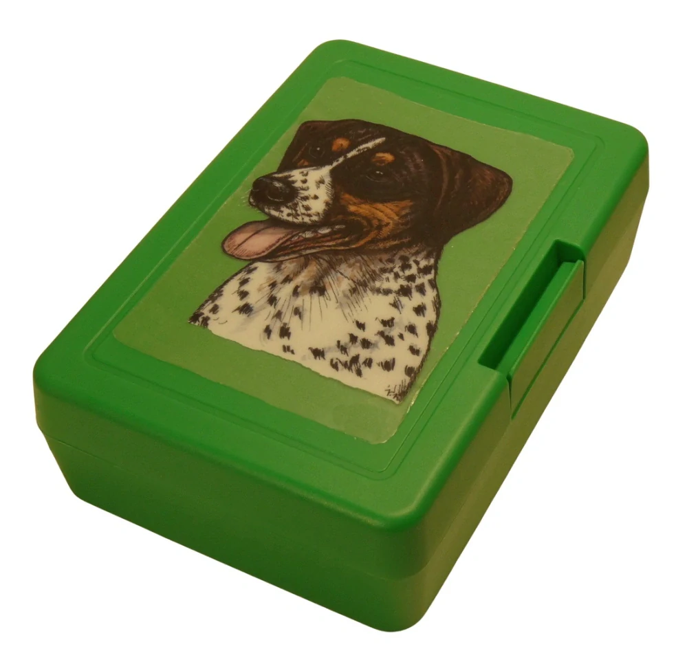 Plastový svačinový box s barevným potiskem českého strakatého psa, dříve nazývaného Horákův laboratorní pes. Boxík je vhodný k uložení nejen klasické svačiny, ale i dalších potravin jako např. sušeného ovoce a oříšků, sušenek a jiných dobrot. Svou velikostí je velmi vhodný dětem do školních aktovek a batohů, do školy i na výlety.