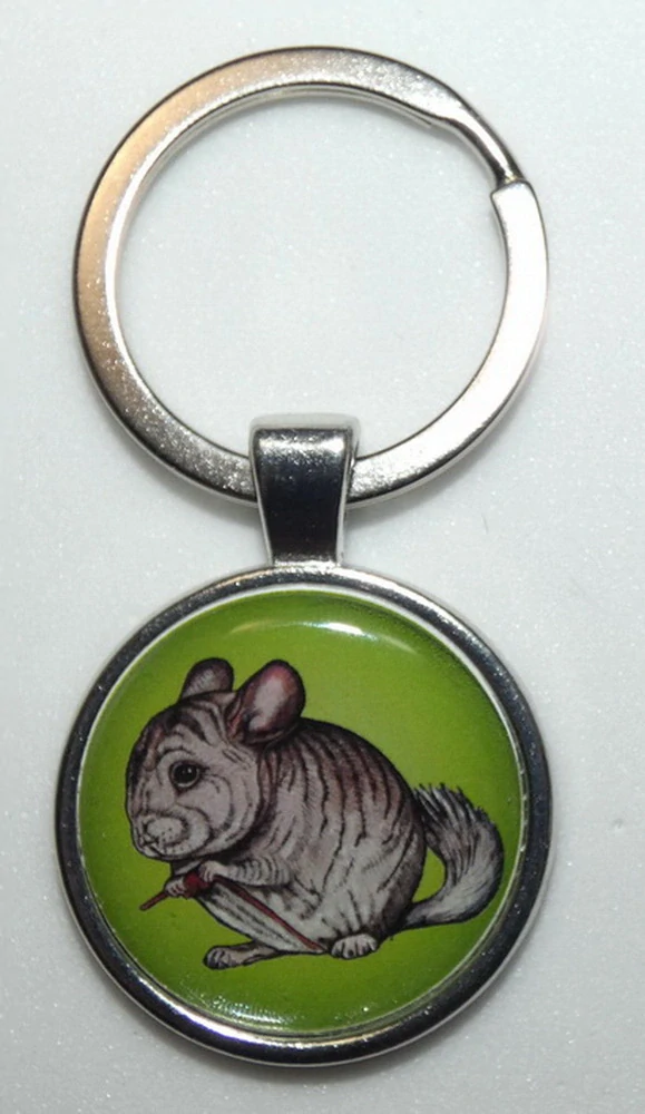 Perokresba činčily s barevným pozadím je na bižuterním lůžku chráněna 3D epoxy pryskyřicí, která je nerozbitná a lehce pruží.