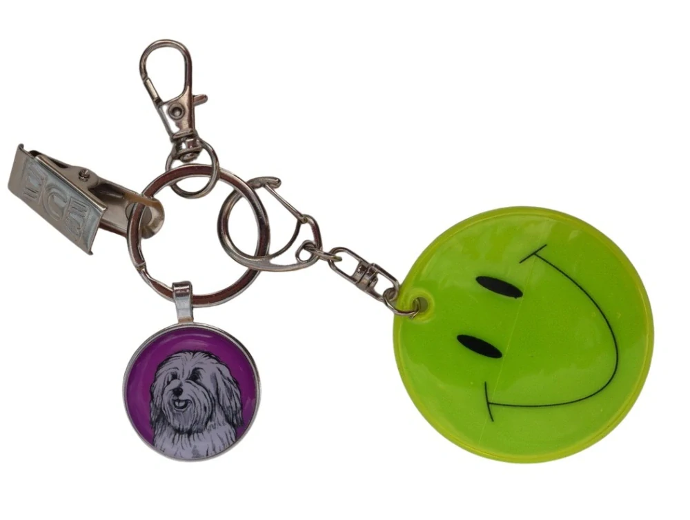 Smajlík - kvalitní reflexní přívěsek z 3M scotchlite materiálu splňující EN 13356, na řetízku ve tvaru kruhu s veselým obličejem, rozměr 5 x 5 cm