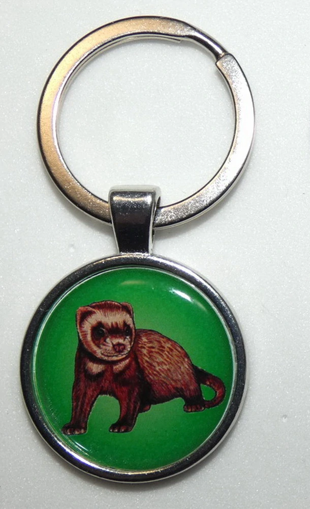 Perokresba fretky s barevným pozadím je na bižuterním lůžku chráněna 3D epoxy pryskyřicí, která je nerozbitná a lehce pruží.  Přívěsek má průměr 25 mm a lze jej nosit standartně na krku, nebo také zavěšený na mobilu, kabelce, batohu, peněžence či klíčích. Přívěsek si lze vybrat ze 2 barevných varian... celý popis