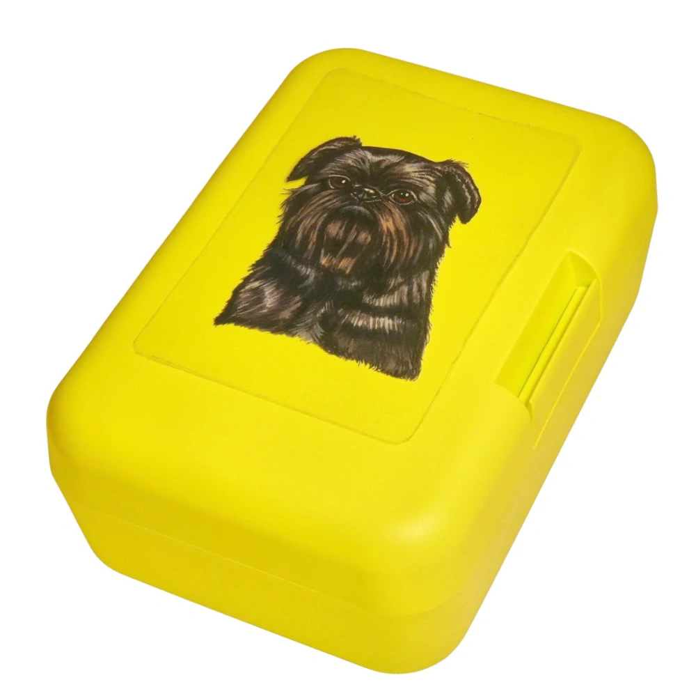 Plastový svačinový box s barevným potiskem belgického grifonka. Vhodný k uložení nejen klasické svačiny, ale i dalších potravin jako např. sušeného ovoce a oříšků, sušenek a jiných dobrot. Svou velikostí je velmi vhodný dětem do školních aktovek a batohů, do školy i na výlety.