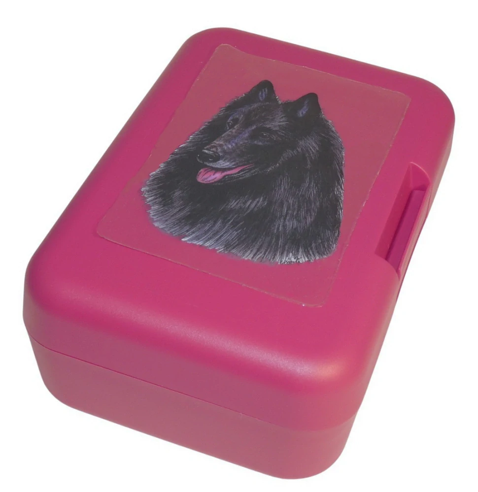 Plastový svačinový box s barevným potiskem belgického ovčáka - groenandaela. Vhodný k uložení nejen klasické svačiny, ale i dalších potravin jako např. sušeného ovoce a oříšků, sušenek a jiných dobrot. Svou velikostí je velmi vhodný dětem do školních aktovek a batohů, do školy i na výlety.