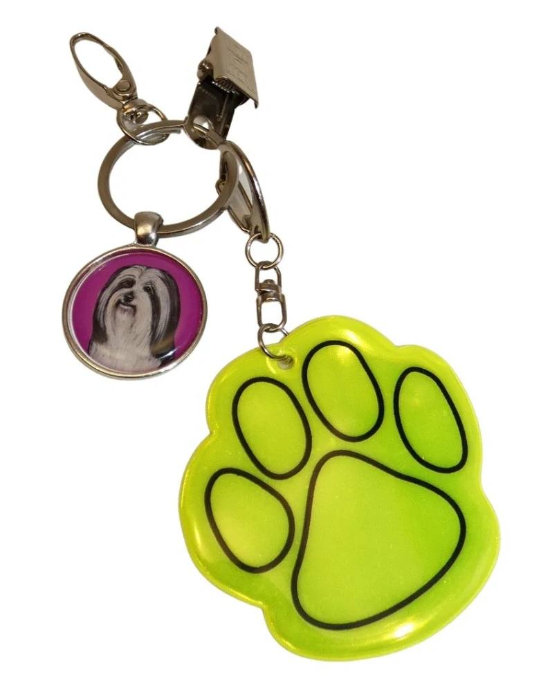 Tlapka - kvalitní reflexní přívěsek z 3M scotchlite materiálu splňující EN 13356, na řetízku ve tvaru tlapky a s potiskem psí tlapky, rozměr 5 x 5 cm