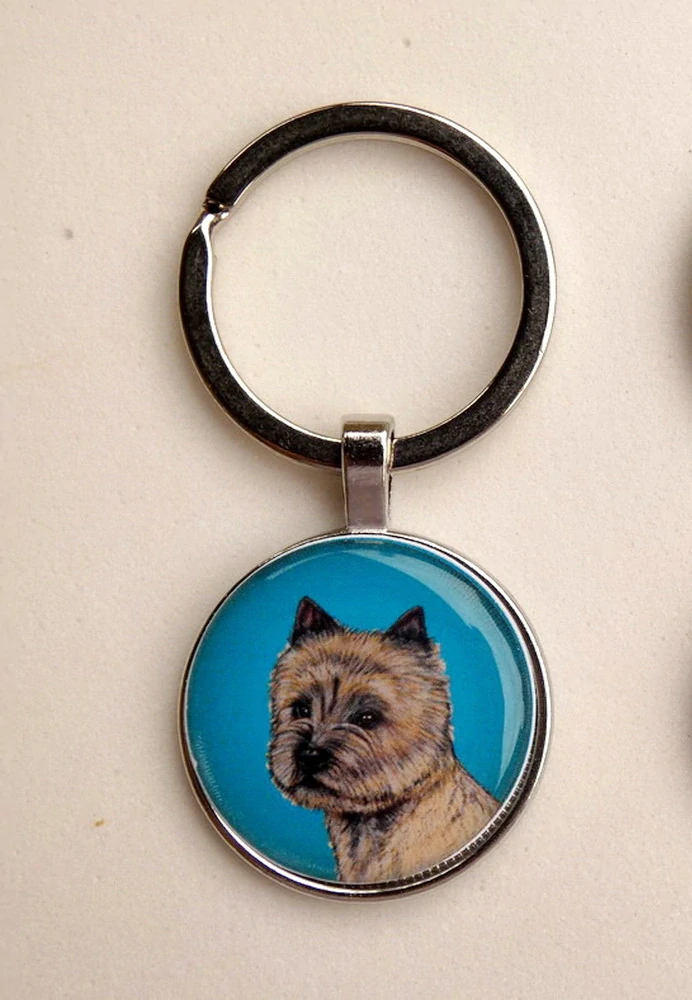 Barevná perokresba psa plemene kernteriér s barevným pozadím je na bižuterním lůžku chráněna 3D epoxy pryskyřicí, která je nerozbitná a lehce pruží.