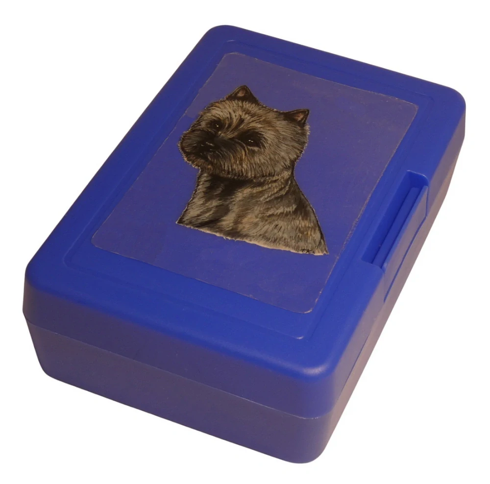Plastový svačinový box s barevným potiskem kernteriéra v žíhané barvě srsti. Vhodný k uložení nejen klasické svačiny, ale i dalších potravin jako např. sušeného ovoce a oříšků, sušenek a jiných dobrot. Svou velikostí je velmi vhodný dětem do školních aktovek a batohů, do školy i na výlety.