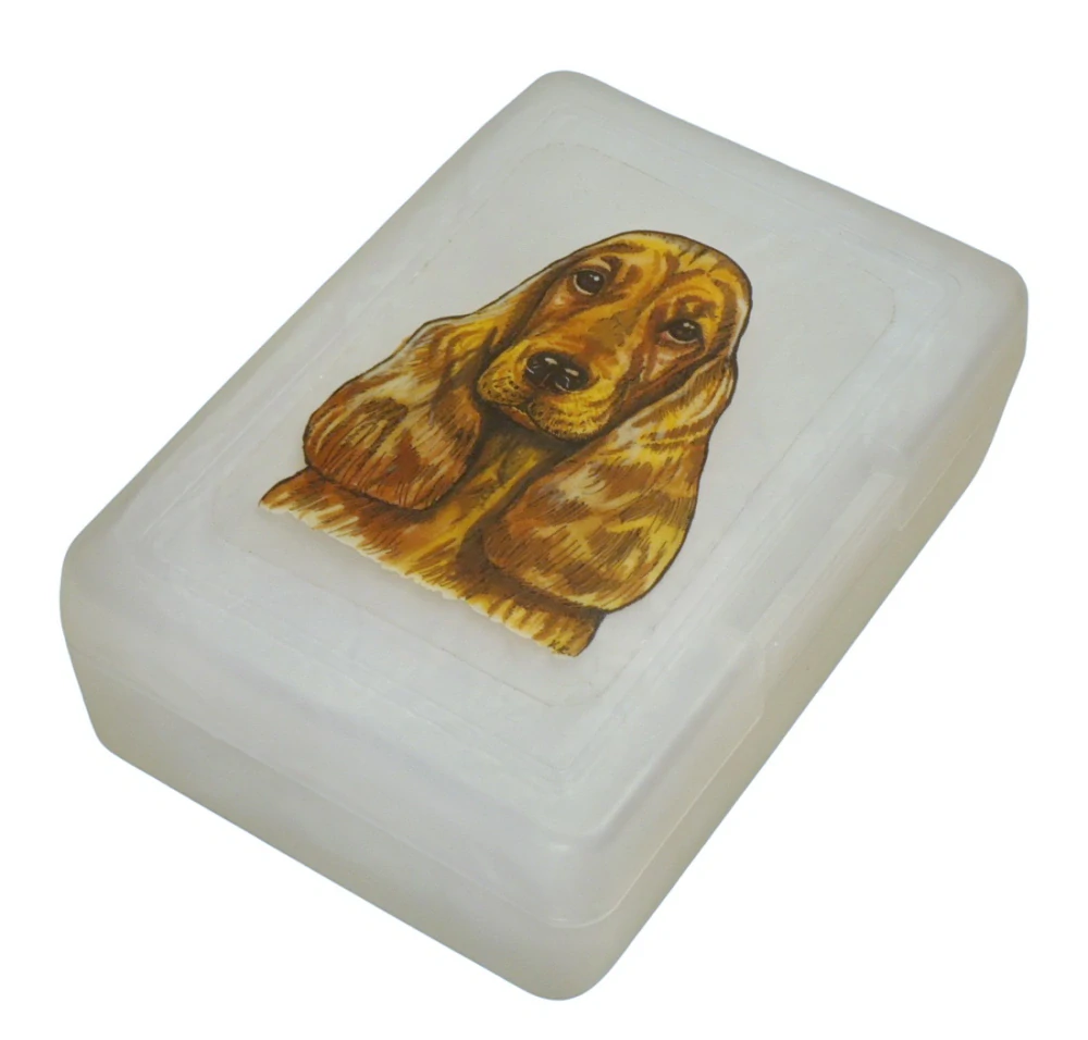 Plastový svačinový box s barevným potiskem anglického kokršpaněla ve zlaté barvě srsti. Vhodný k uložení nejen klasické svačiny, ale i dalších potravin jako např. sušeného ovoce a oříšků, sušenek a jiných dobrot. Svou velikostí je velmi vhodný dětem do školních aktovek a batohů, do školy i na výlety.