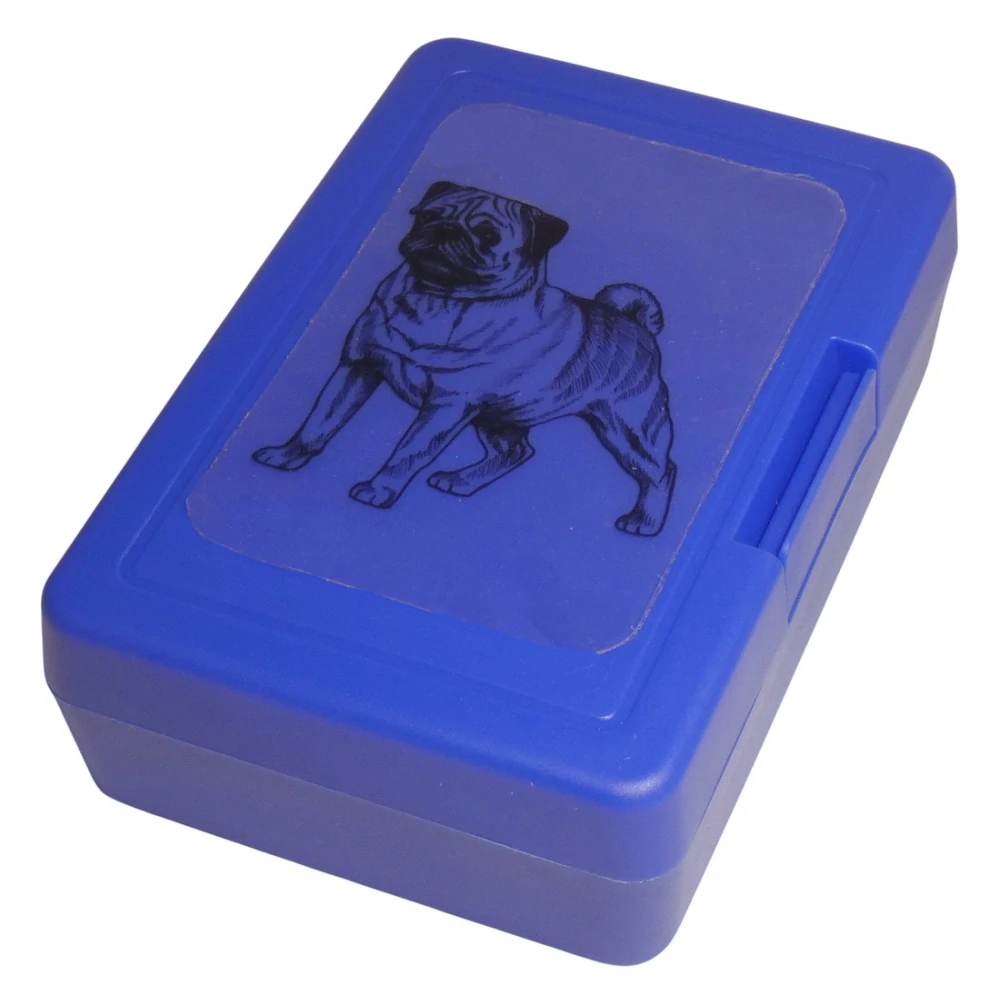Plastový svačinový box s potiskem mopse (pug). Vhodný k uložení nejen klasické svačiny, ale i dalších potravin jako např. sušeného ovoce a oříšků, sušenek a jiných dobrot. Svou velikostí je velmi vhodný dětem do školních aktovek a batohů, do školy i na výlety.
