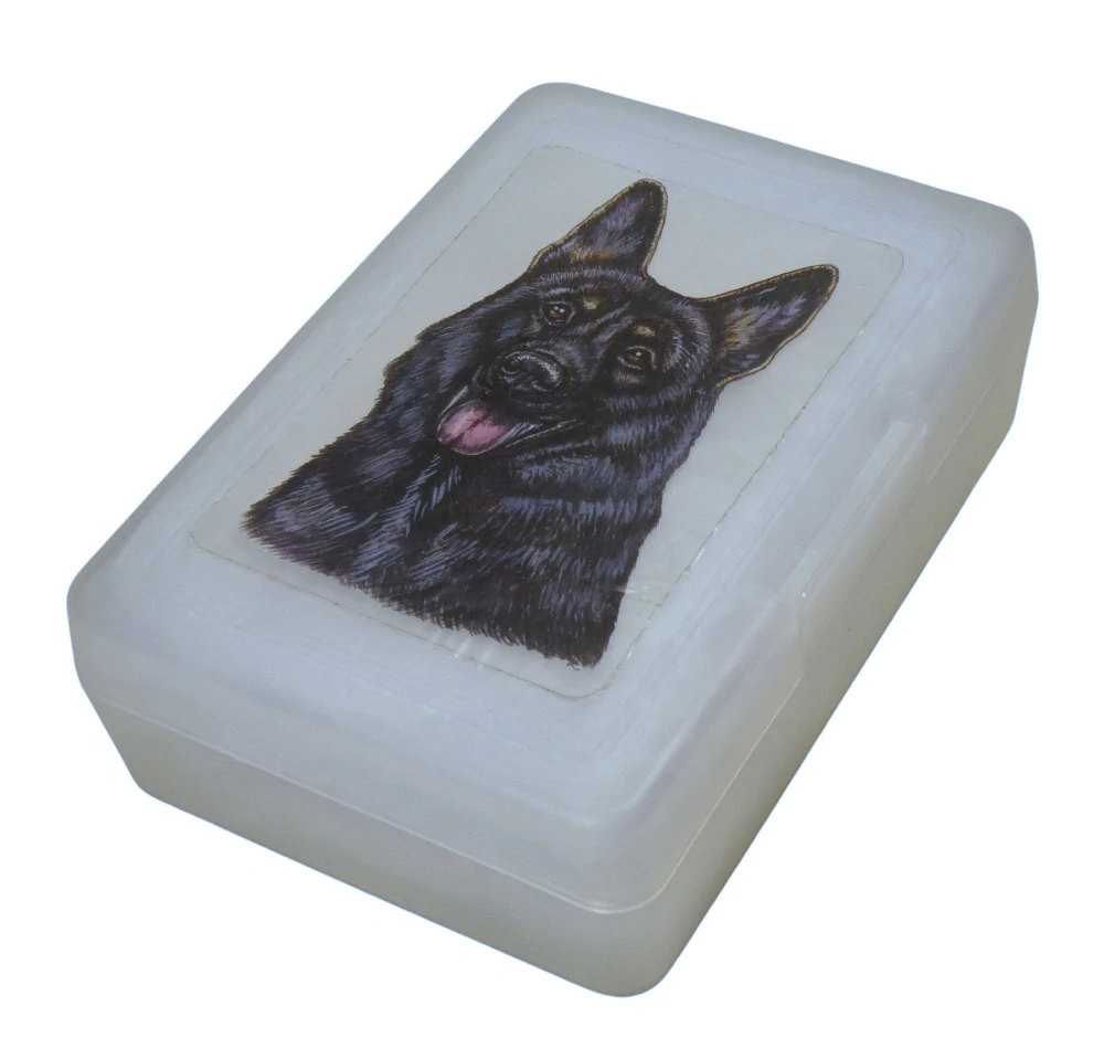 Plastový svačinový box s barevným potiskem německého ovčáka v barvě srsti černé s pálením. Vhodný k uložení nejen klasické svačiny, ale i dalších potravin jako např. sušeného ovoce a oříšků, sušenek a jiných dobrot. Svou velikostí je velmi vhodný dětem do školních aktovek a batohů, do školy i na výlety.