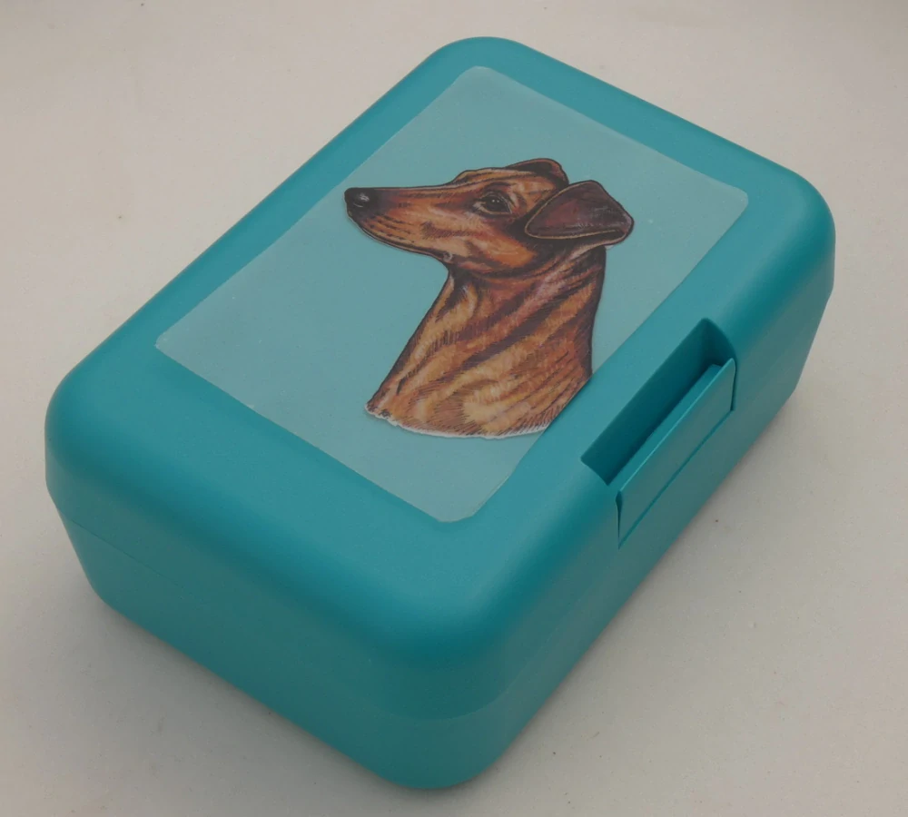 Plastový svačinový box s barevným potiskem německého pinče. Vhodný k uložení nejen klasické svačiny, ale i dalších potravin jako např. sušeného ovoce a oříšků, sušenek a jiných dobrot. Svou velikostí je velmi vhodný dětem do školních aktovek a batohů, do školy i na výlety.