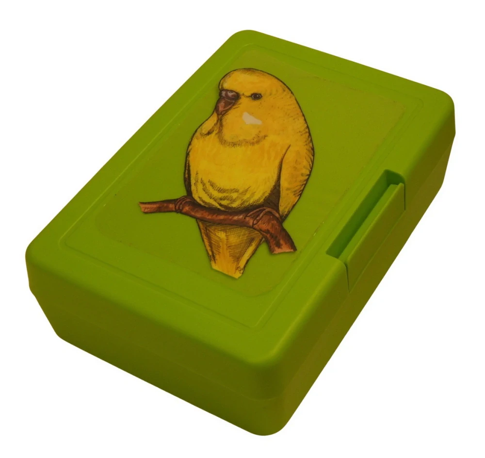 Plastový svačinový box s barevným potiskem ptáčka andulky se žlutým peřím. Vhodný k uložení nejen klasické svačiny, ale i dalších potravin jako např. sušeného ovoce a oříšků, sušenek a jiných dobrot. Svou velikostí je velmi vhodný dětem do školních aktovek a batohů, do školy i na výlety.