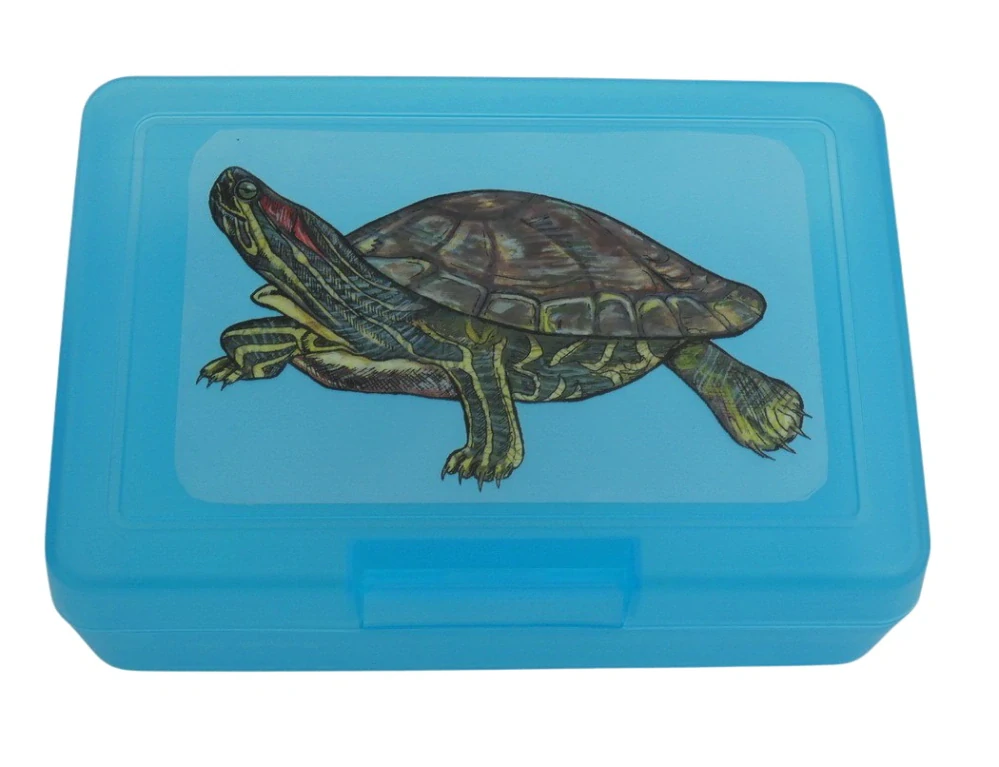 Plastový svačinový box s barevným potiskem želvy nádherné. Vhodný k uložení nejen klasické svačiny, ale i dalších potravin jako např. sušeného ovoce a oříšků, sušenek a jiných dobrot. Svou velikostí je velmi vhodný dětem do školních aktovek a batohů, do školy i na výlety.