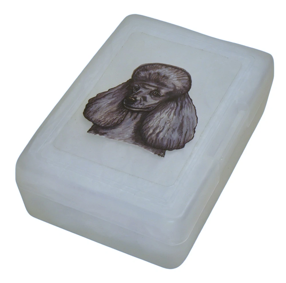Plastový svačinový box s potiskem pudla ve stříbrné barvě srsti a moderním střihu. Vhodný k uložení nejen klasické svačiny, ale i dalších potravin jako např. sušeného ovoce a oříšků, sušenek a jiných dobrot. Svou velikostí je velmi vhodný dětem do školních aktovek a batohů, do školy i na výlety.
