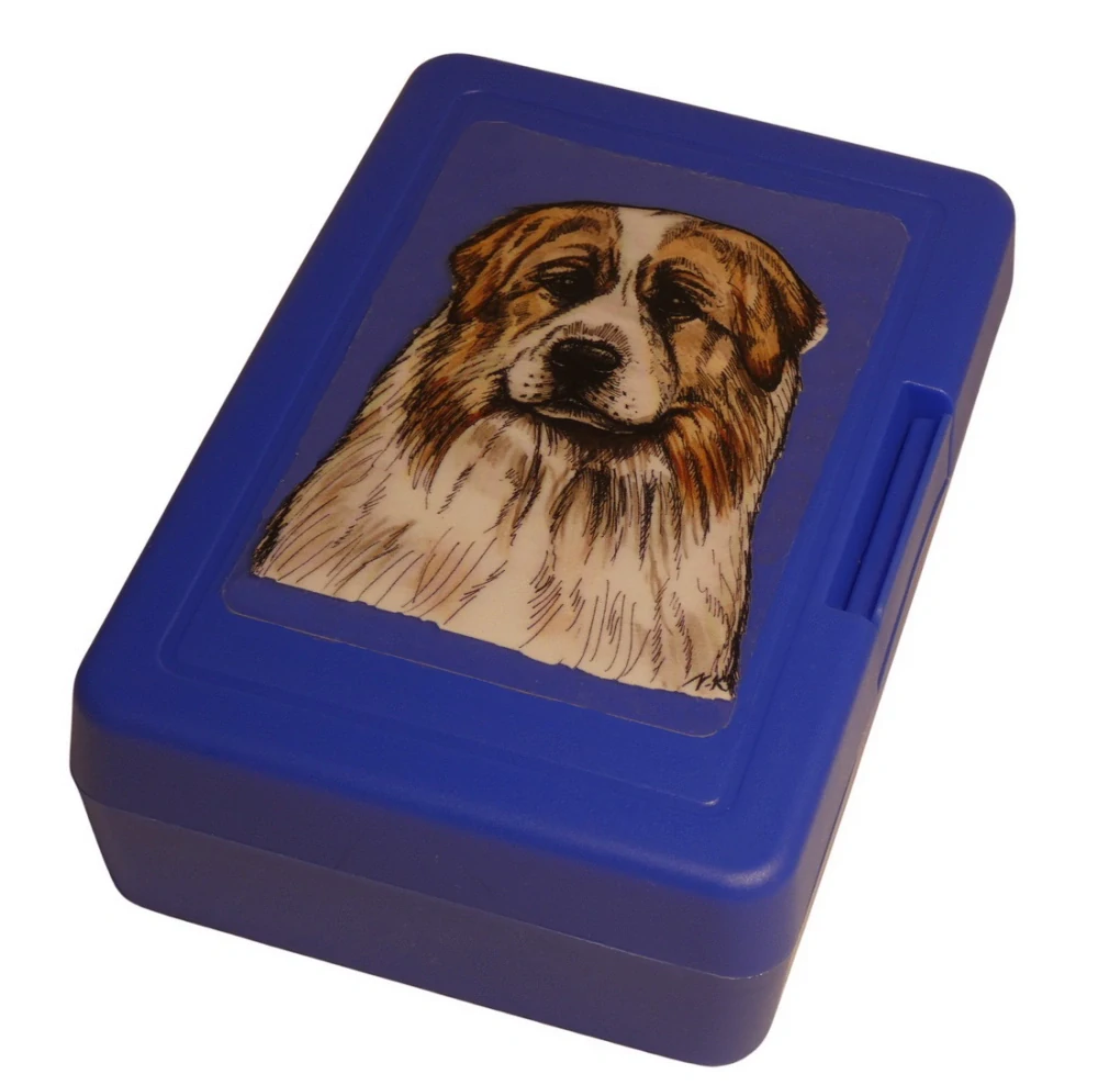 Plastový svačinový box s barevným potiskem pyrenejského horského psa. Vhodný k uložení nejen klasické svačiny, ale i dalších potravin jako např. sušeného ovoce a oříšků, sušenek a jiných dobrot. Svou velikostí je velmi vhodný dětem do školních aktovek a batohů, do školy i na výlety.