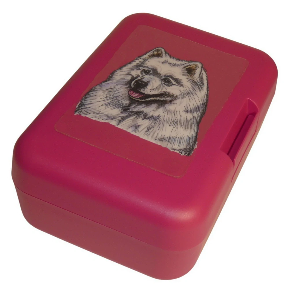 Plastový svačinový box s potiskem plemene samojed. Boxík je vhodný k uložení nejen klasické svačiny, ale i dalších potravin jako např. sušeného ovoce a oříšků, sušenek a jiných dobrot. Svou velikostí je velmi vhodný dětem do školních aktovek a batohů, do školy i na výlety.