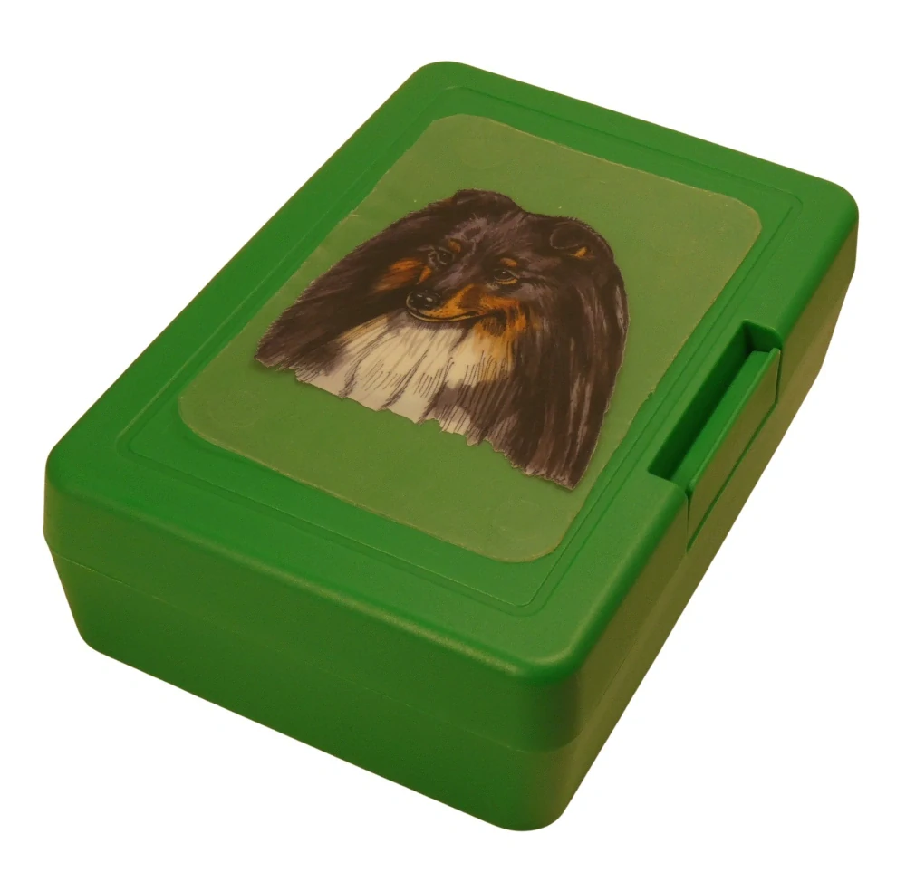 Plastový svačinový box s barevným potiskem šeltie. Vhodný k uložení nejen klasické svačiny, ale i dalších potravin jako např. sušeného ovoce a oříšků, sušenek a jiných dobrot. Svou velikostí je velmi vhodný dětem do školních aktovek a batohů, do školy i na výlety.