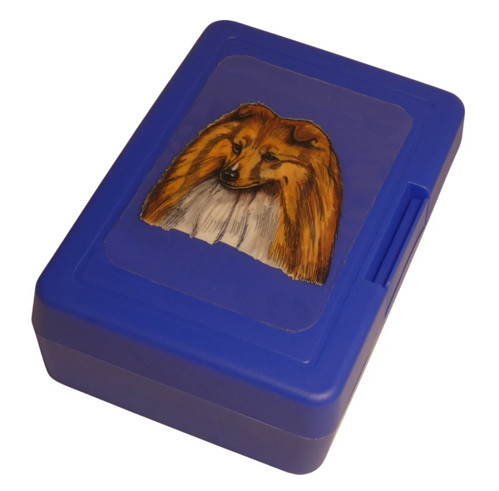 Plastový svačinový box s barevným potiskem šeltie. Vhodný k uložení nejen klasické svačiny, ale i dalších potravin jako např. sušeného ovoce a oříšků, sušenek a jiných dobrot. Svou velikostí je velmi vhodný dětem do školních aktovek a batohů, do školy i na výlety.