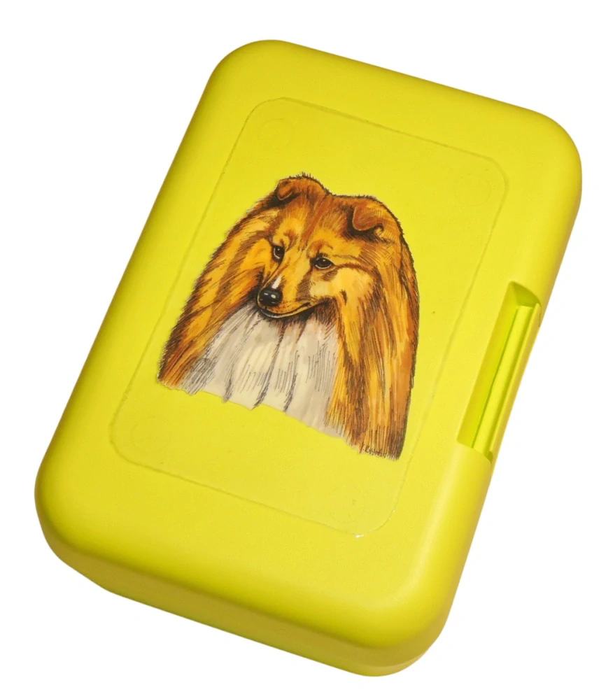 Plastový svačinový box s barevným potiskem šeltie. Vhodný k uložení nejen klasické svačiny, ale i dalších potravin jako např. sušeného ovoce a oříšků, sušenek a jiných dobrot. Svou velikostí je velmi vhodný dětem do školních aktovek a batohů, do školy i na výlety.
