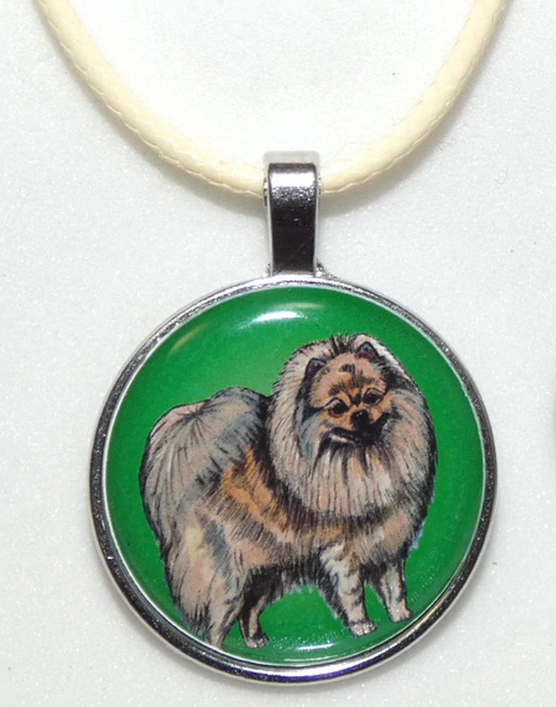 Perokresba špice v krémové barvě srsti s barevným pozadím je na bižuterním lůžku chráněna 3D epoxy pryskyřicí, která je nerozbitná a lehce pruží.  Přívěsek má průměr 25 mm a lze jej nosit standartně na krku, nebo také zavěšený na mobilu, kabelce, batohu, peněžence či klíčích. Přívěsek si lze vybrat ... celý popis
