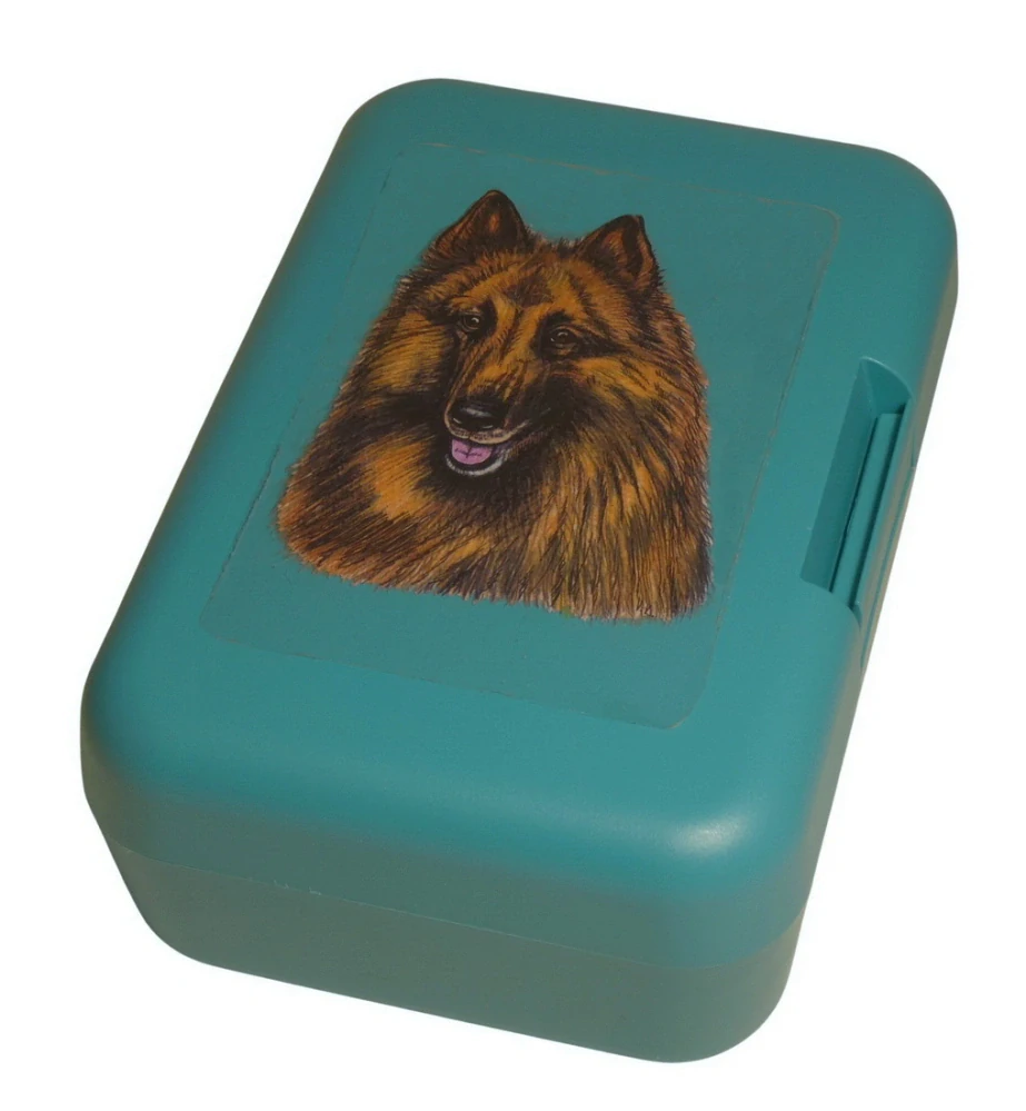 Plastový svačinový box s barevným potiskem belgického ovčáka - tervuerena. Vhodný k uložení nejen klasické svačiny, ale i dalších potravin jako např. sušeného ovoce a oříšků, sušenek a jiných dobrot. Svou velikostí je velmi vhodný dětem do školních aktovek a batohů, do školy i na výlety.